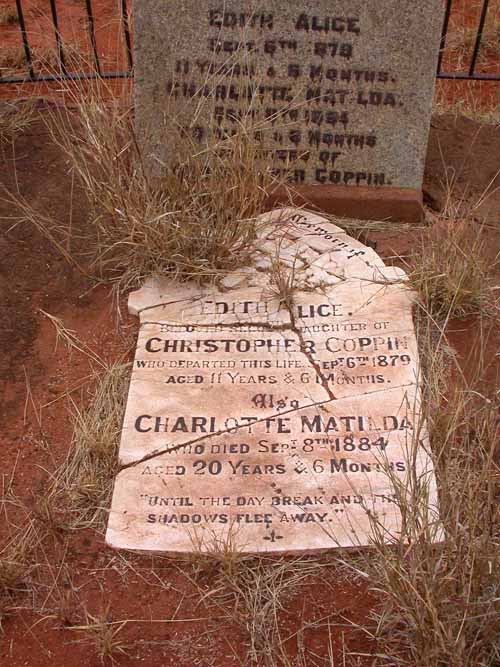 COOPER John AstleyCOOPER John AstleyCOOPER John AstleyCOPPIN Edith Alice & Charlotte MatildaCOPPIN, Edith Alice, Christopher & Charlotte MatildaCOPPIN, Edith Alice & Charlotte Matildac 68 COPPIN Edith Alice Charlotte Matilda buried Muccan Station East Pilbara Photo Ruth John Luyer 2003 150x150CORNELLY, FarrellCORNELLY Farrell, DORAN, Moreton (largest headstone) & BRAND babyCORNISH, Arthur BCOSSAR Kevin GraemeCOSSAR Kevin GraemeCOTTER MauriceCOTTLE, Elizabeth MayCOVEY, FrancisCOWIE Andrew LeeCOWIE Andrew LeeCOX, Daisy & NellieCOX Family Burial Ground COX WilliamCOXON James COXON JamesCOYNE babyCRAIG RobertCRAIG RobertCRAWFORD, JohnCREAM Mary JaneCREAM Mary JaneCREAM Mary JaneCRECHAN ThomasCRECHAN ThomasCROCKER AmyCROCKER AmyCROTTY James HenryCROWSON June VioletCUFF Kevin Harcombe & RIX SidneyCULLANE FatherCULLANE Father