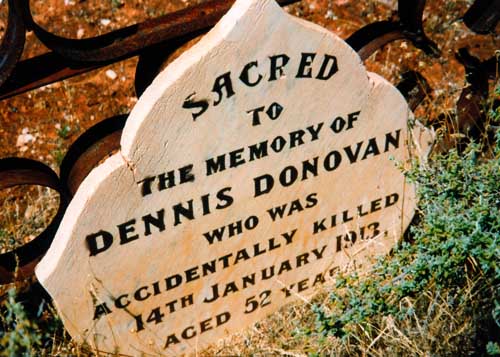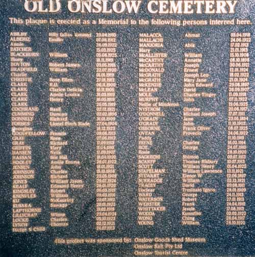 Resting Places: Boddington, Broad Arrow Kurawah Cemetery, Cogla Downs Station, Cocanarup Homestead Phillip River, Derdebin Station West Yorkrakine, Downa Gingin, Gordon Downs Station, Karridale Pioneer Cemetery, Lynburn Station Esperance, Lynton Convict Settlement, Middle Island Esperance, Mt Herbert Ashburton, Mt Stirling, Mullewa, New Mexico Gold Mine, Norseman, Old Menzies Cemetery, Onslow Pioneer Cemetery, Pingin Cemetery Menzies, Wickepin Pioneer Cemetery, Widgiemooltha Cemetery, Yanrey Station Ashburton