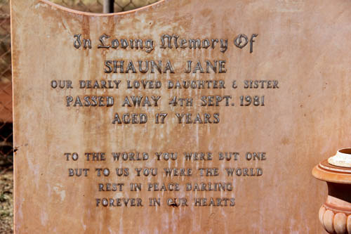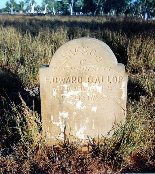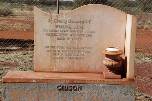 Rest Places:  Boolading Farm, Broad Arrow Kurawah Cemetery, Colga Downs Station in Barrambie Cemetery, Cullculli Station, Dalbercutting Spring Station Kellerberrin, Davyhurst Cemetery, Deepdale Estate Toodyay, De Grey Station, Digger Rock, Eastern Creek, Fitzroy Crossing Pioneer Cemetery, Glendalough, Kalumburu, Karridale Pioneer Cemetery, Korrelocking, Mardathuna Station Carnarvon, Marys Pool, Millstream Station, Mt Newman Cemetery, Mt Phillip Station Gascoyne, Onslow Piioneer Cemetery, Parry Creek, Rudds Gully Greenough, Shark Bay, Tardun, Whim Creek Cemetery, Wickepin Pioneer Cemetery, Windjane Gorge West Kimberley