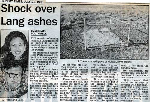 Rest Places: Arthur River, Boddington, Broad Arrow Kurawah Cemetery, Bullera Soak Austin Downs, Coodardy Station, Cossack Cemetery, Davyhurst Cemetery, Fraser Range Station, Glendalough, Glentromie Cemetery, Hopetoun Pioneer Cemetery, Karridale Pioneer Cemetery, Mandiga, Meka Station Yalgoo, Mertondale Cemetery, Milgun Station homestead, Millie Soak, Mulga Downs, NSW, Nullagin, Old Cue Cemetery, Old Point Cloates Norwegian Bay Whaling Station Ningaloo Station, Old Wannamal Cemetery, Onslow Pioneer Cemetery, Parkyerring Wagin, Paynesville Cemetery Mt Magnet, Wilyah Point Useless Inlet Shark Bay, Yarraloola Station Ashburton
