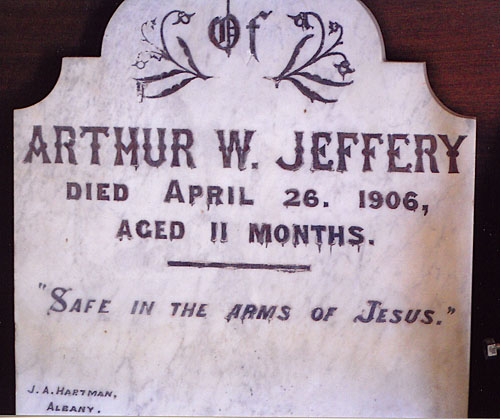 Resting Places: Calingiri, Broad Arrow Kurawah Cemetery, Calingiri, Coodardy Station, Davyhurst Cemetery, Diamond Bore Albala Karoo Nullabour Plains, Eucla, Glendalough, Gullewa Cemetery, Hill Grove Station (now El Questro), Mingenew, Mindaroo, Monkey Mia, Mt Newman Cemetery, Mt Palmer Yilgarn, Murchison House Station, Northam, Oscar Range Station, Onslow Pioneer Cemetery, Springhill Private Cemetery Bunbury, Wickepin Pioneer Cemetery