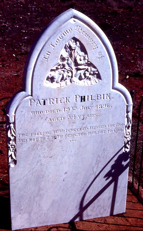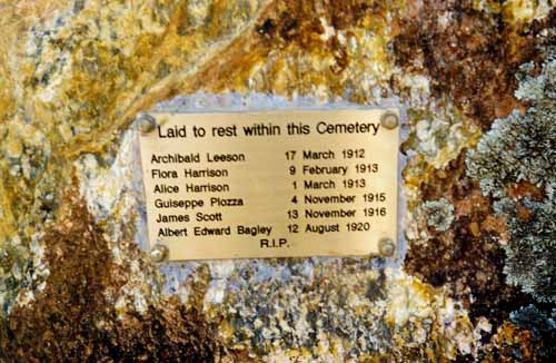 Rest Places:  Austin Cemetery, Broad Arrow Kurawah Cemetery, Cockatoo Creek East Kimberley, Condon Cemetery, Fields First Cemetery, Forrest River Mission East Kimberley, Lissadell Station Kimberley, Mandurah Old Churchyard, Mangowine, 1st Meekatharra Cemetery, Menzies, Mt Newman Cemetery, Old Cue Cemetery, Old Wannamal Cemetery, Onslow Pioneer Cemetery, Ord River Station Cemetery, Fitzroy River, Rottnest Island, Sheep Island Camden Sound, Springhill Private Cemetery, St John's Churchyard Bootenal, Turee Creek Station, Wickepin Pioneer Cemetery, Yanrey Station Ashburton