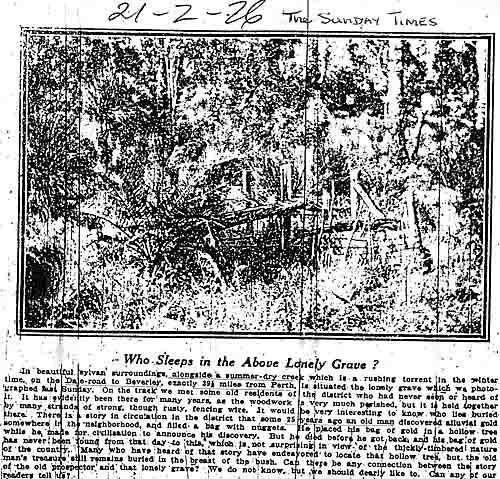There are many graves in Western Australia that are no longer named or marked. Some are on their own and others are on Stations and Cemeteries.