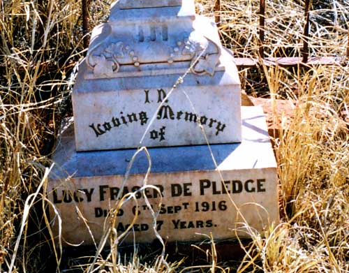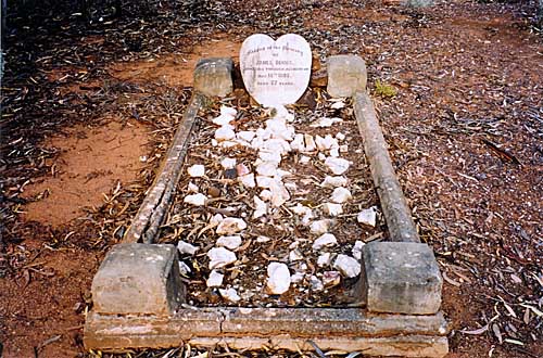 Resting Places: Boddington, Broad Arrow Kurawah Cemetery, Cogla Downs Station, Cocanarup Homestead Phillip River, Derdebin Station West Yorkrakine, Downa Gingin, Gordon Downs Station, Karridale Pioneer Cemetery, Lynburn Station Esperance, Lynton Convict Settlement, Middle Island Esperance, Mt Herbert Ashburton, Mt Stirling, Mullewa, New Mexico Gold Mine, Norseman, Old Menzies Cemetery, Onslow Pioneer Cemetery, Pingin Cemetery Menzies, Wickepin Pioneer Cemetery, Widgiemooltha Cemetery, Yanrey Station Ashburton