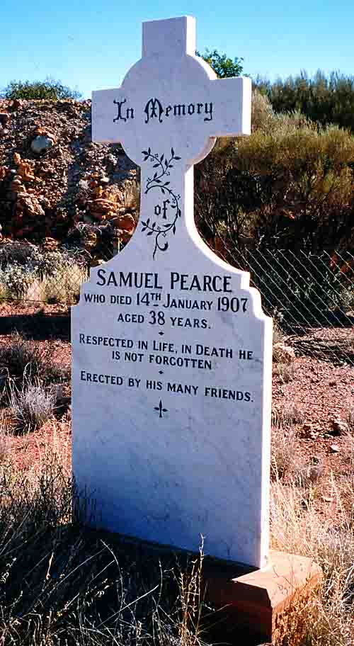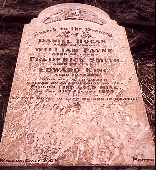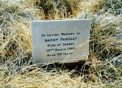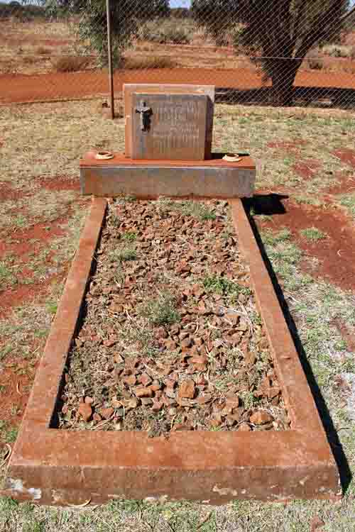 Rest Places:  Austin Cemetery, Broad Arrow Kurawah Cemetery, Cockatoo Creek East Kimberley, Condon Cemetery, Fields First Cemetery, Forrest River Mission East Kimberley, Lissadell Station Kimberley, Mandurah Old Churchyard, Mangowine, 1st Meekatharra Cemetery, Menzies, Mt Newman Cemetery, Old Cue Cemetery, Old Wannamal Cemetery, Onslow Pioneer Cemetery, Ord River Station Cemetery, Fitzroy River, Rottnest Island, Sheep Island Camden Sound, Springhill Private Cemetery, St John's Churchyard Bootenal, Turee Creek Station, Wickepin Pioneer Cemetery, Yanrey Station Ashburton