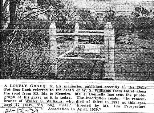 Rest Places: Broad Arrow Kurawah Cemetery, Corunna Downs Station, Cullculli Station Cemetery, Davyhurst Cemetery, Doodenanning, Forrest River Mission, Gullewa Cemetery Yalgoo, Karridale Pioneer Cemetery, Lake Dundas, Menzies, Milly Milly Station Cemetery, Mt Newman Cemetery, Mt Palmer, Onslow Pioneer Cemetery, Ord River Station East Kimberley, Rabbit Proof Fence Gascoyne Junction, Rockhole Station, Stirling View Porongorup, Tarin Rock, Wiluna Cemetery, Woodman Point Quarantine Station