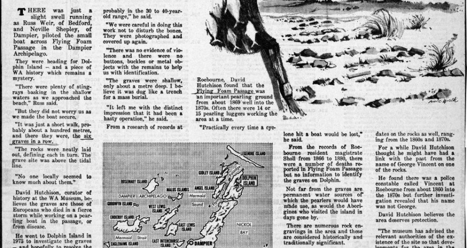 AjanaArthur RiverAshmore Reef Ashmore ReefBaiting Place 83 Mile Peg north of WilliamsBeaufort RiverBeejenup, GnowangerupBencubbinBannister Bilung Pool Carnarvon Mullewa Road Blackwood RiverBoddingtonBox Soak LeonoraBrowse IslandBullera Soak Austin DownsCamden Harbour Kimberley coastCanning Mills Road KalamundaCape Bossut Cape Bossut GravesCape Bossut Graves on Kimberley Coast Cape BougainvilleCape BougainvilleCape Leveque Lonely Graves on Dampier PeninsulaCarmelChubbe Siding Circle Valley Cockatoo Creek 8 Mile WellGrave Hill 3 miles north of CoolgardieCunderdinCurrans Find Cygnet Bay Cygnet Bay Deadmans SoakDigger Rock near Hyden Dolphin Island Dolphin Island Dolphin Island Doodenanning Dromedary HillsDuladgin Yilgarn