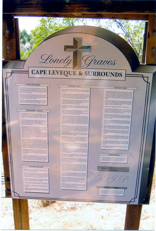 The development of the coastal regions and outback of Western Australia has seen people buried in many out of the way places. Some of those shown here are in unmarked graves and the people are also unknown.